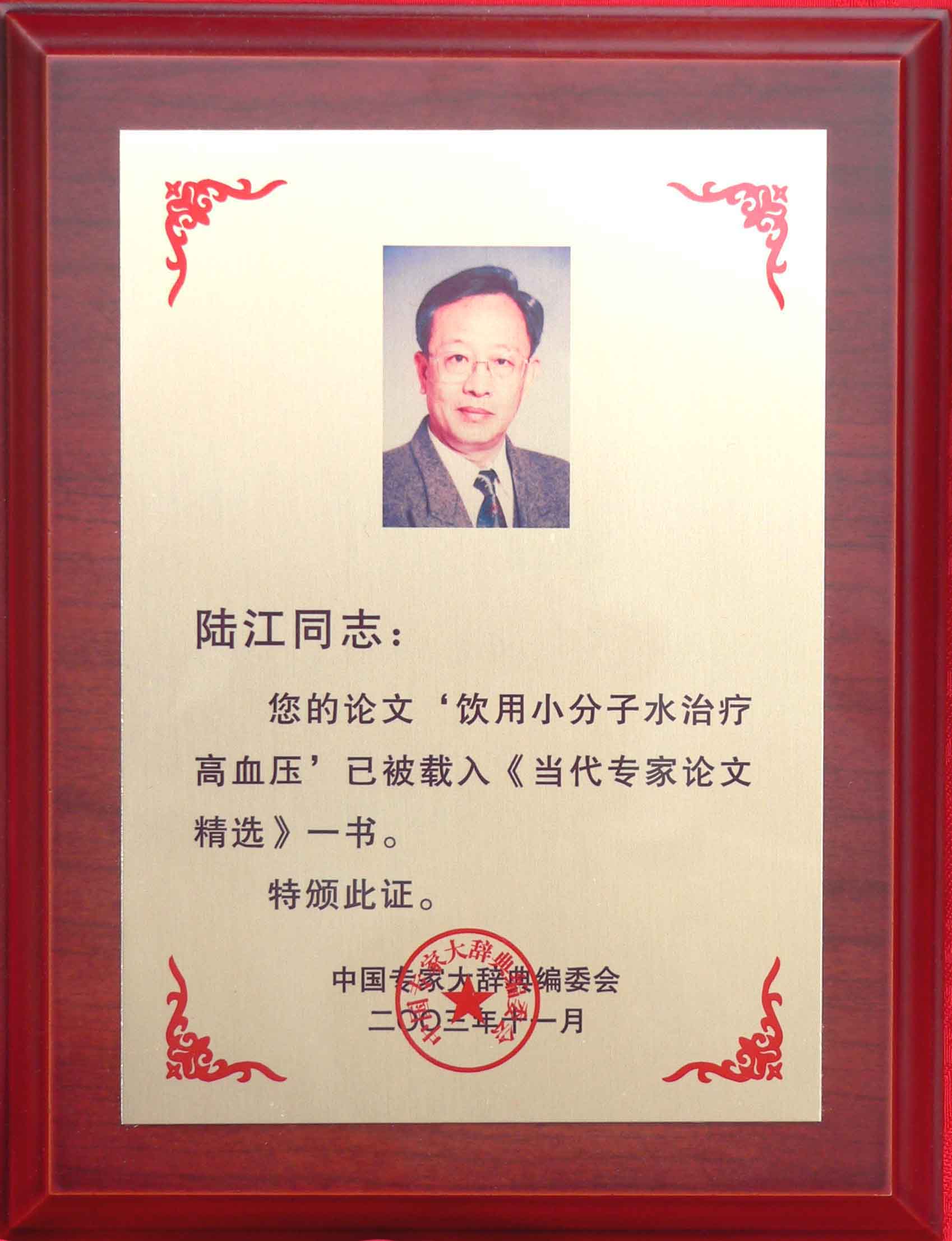 《飲用小分子水治療高血脂》獲優(yōu)秀論文獎